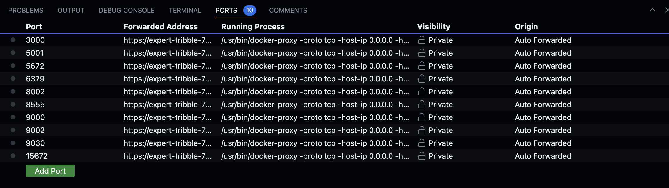 In GitHub Spaces, the ports are private by default, preventing users from accessing them. To access your pooler dashboard, you need to change the visibility of the port.