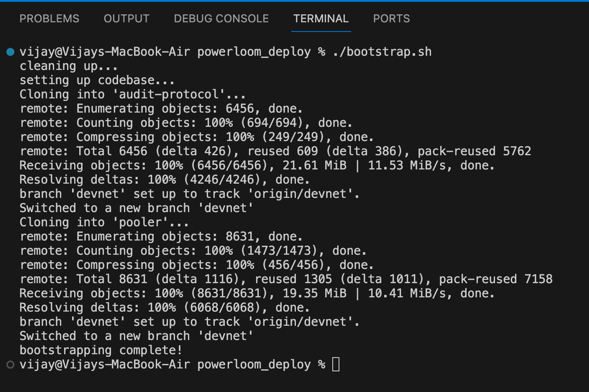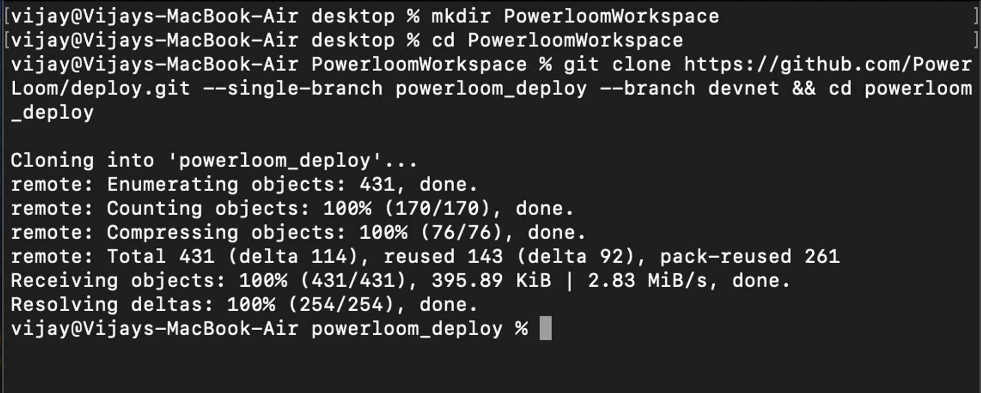 Paste the command below. This creates a directory powerloom_deploy and clones the repository
