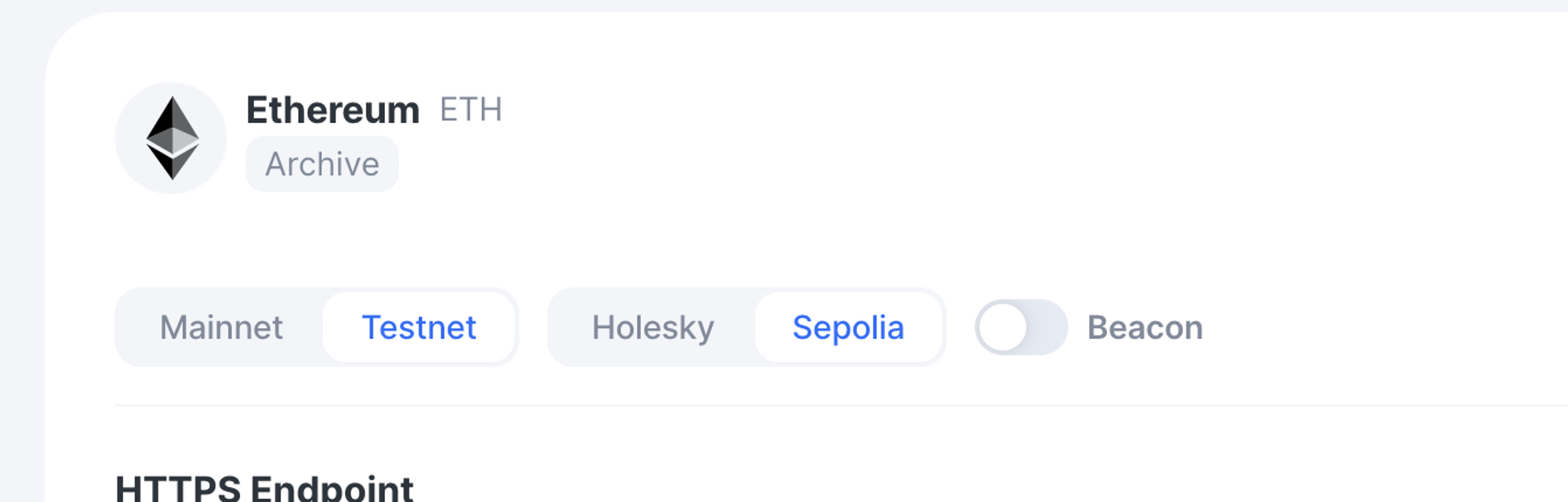 - It will redirect you to a new page dedicated to endpoints for Ethereum. Select Testnet -> Sepolia. Now copy the HTTPS Endpoint generated.