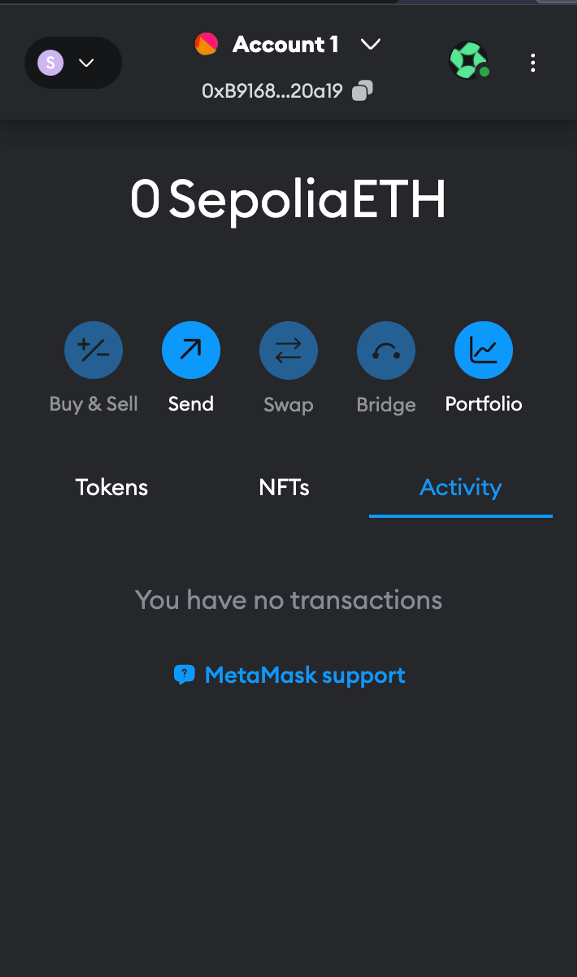 - For Metamask: The transaction will be under the Activity section.