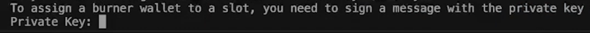 - It will prompt you to assign a burner wallet to your SLOT_ID. This step happens only once. Type “yes”