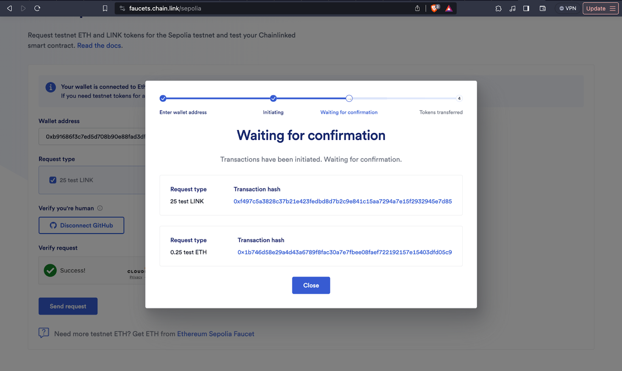 - Verify your account then select “get .25 Sepolia Eth” and then click on “Send request”