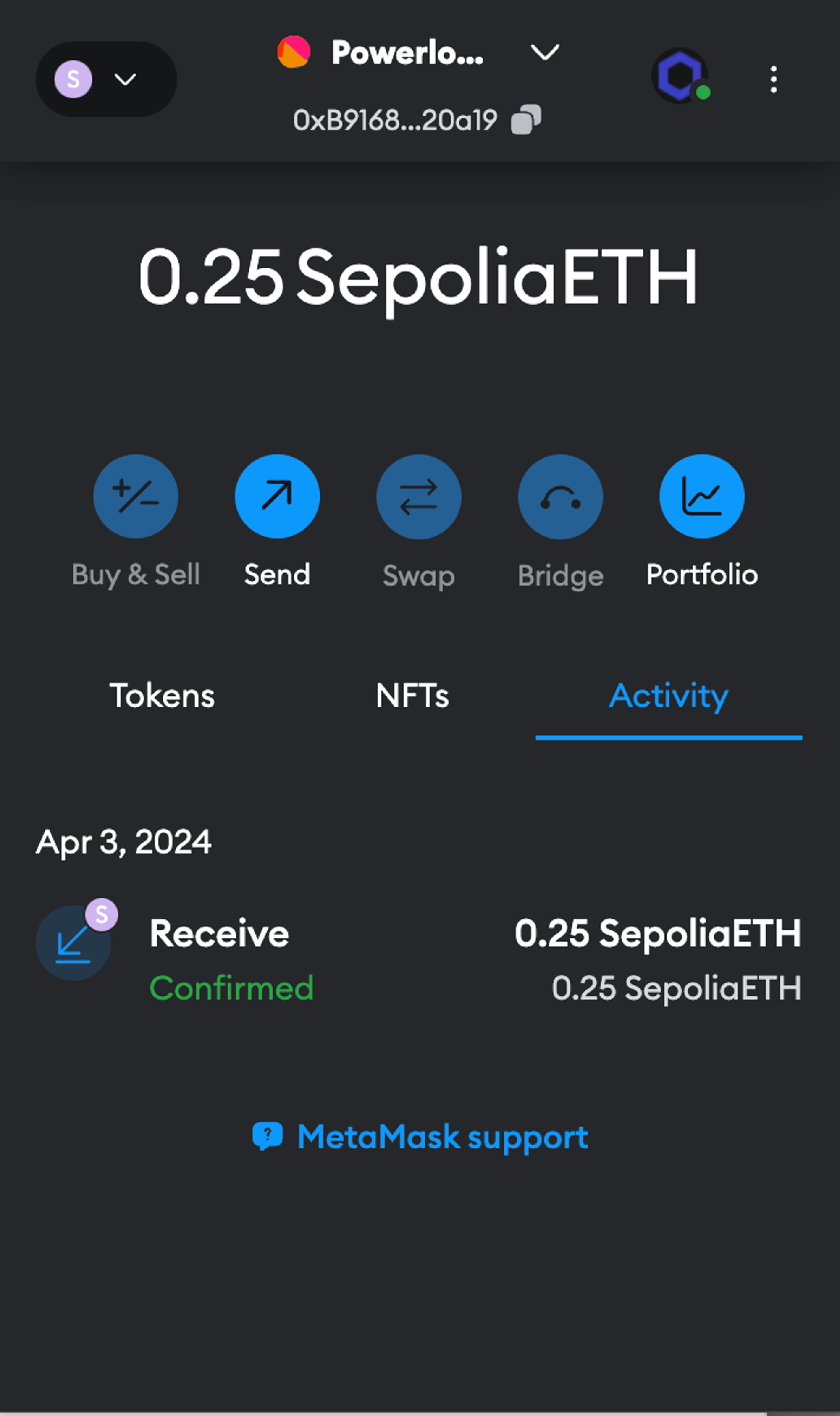 Once it is done, you will see 0.25 Sepolia Eth in your Metamask wallet.
