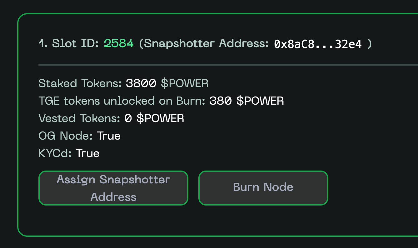 Existing snapshotters — who are already running their nodes on Mainnet — can also start claiming Daily Rewards from a daily pool of 50,000 POWER. Or they can burn their slots to claim the unlocked portion of their staked POWER allocation.