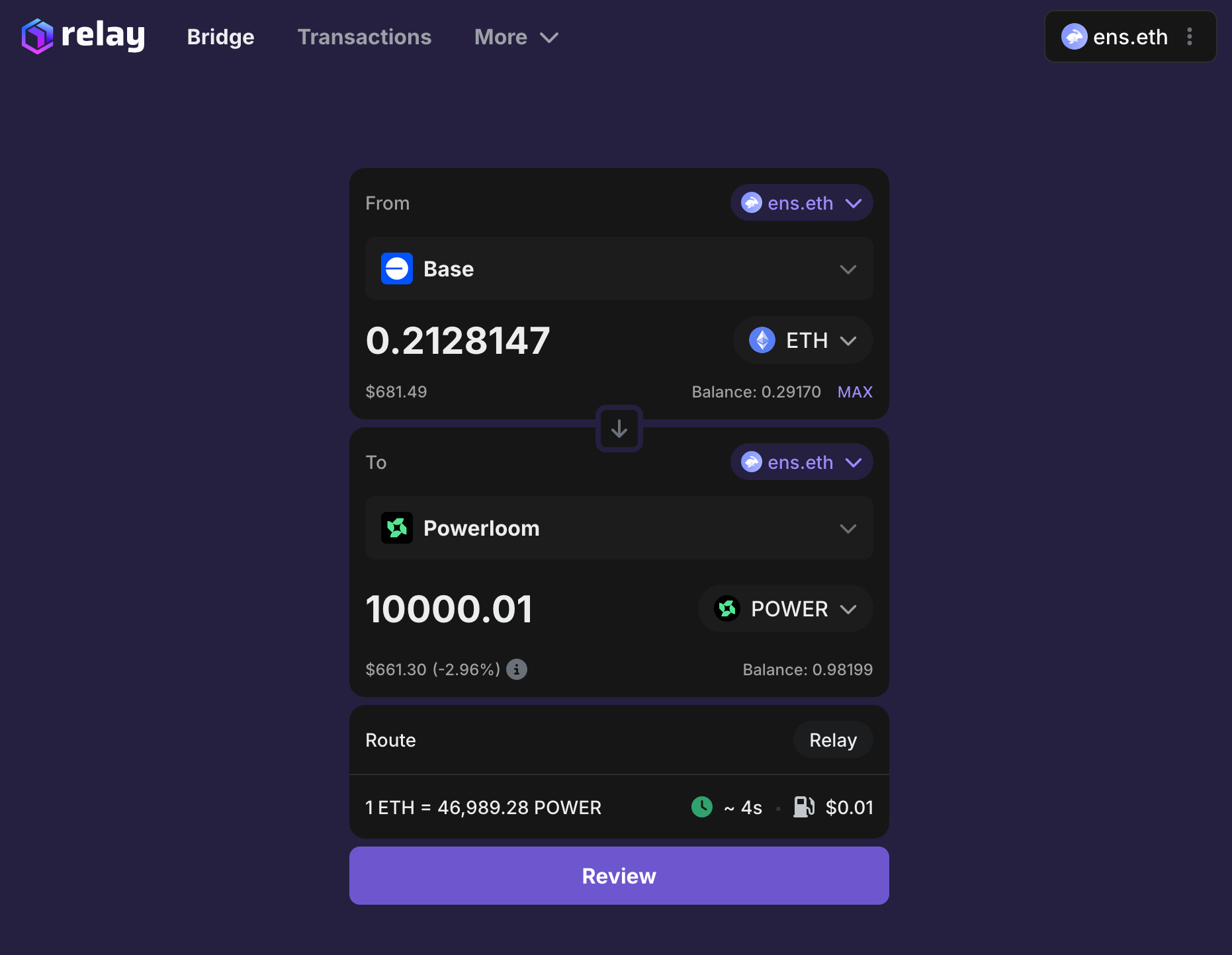 b. The third-party bridge powered by our partner, Relay Protocol which has a tiny fee but does allow swapping other assets from multiple chains directing to Powerloom mainnet!