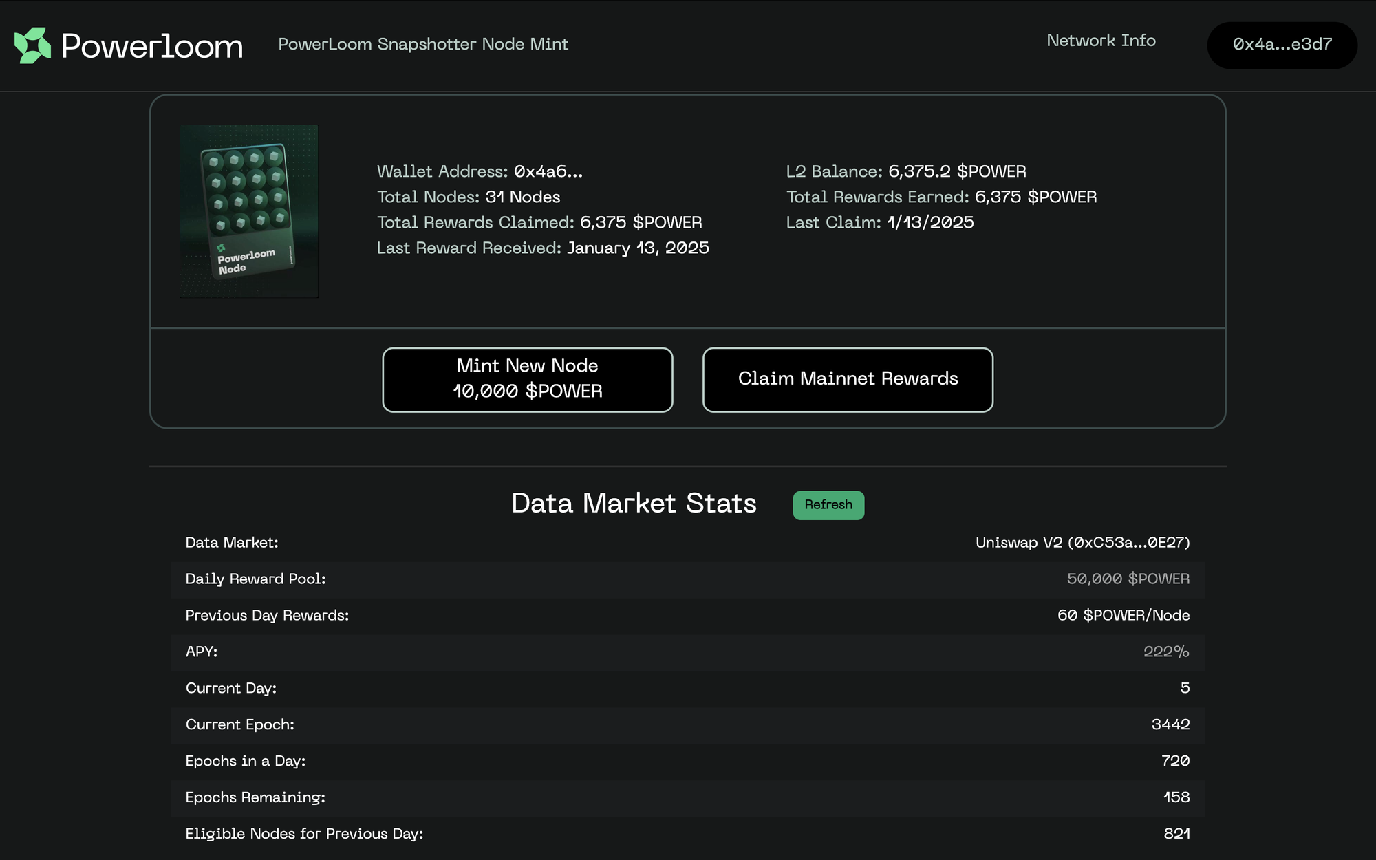 Once the mint is successfully completed, you can start participating in Powerloom’s distributed data economy.